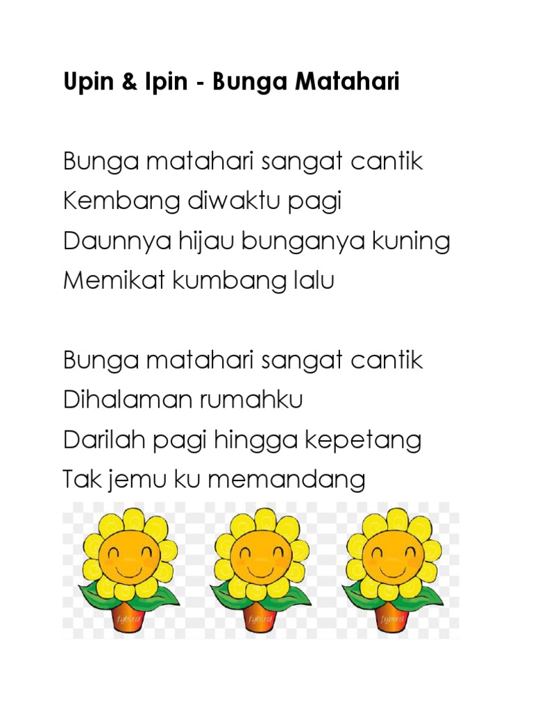 Bunga ini berwarna kuning terang dan selalu menghadap matahari nama ilmiah bunga matahari adalah helianthus annuus l. Berikut lirik dan chord lagu bunga. Bunga matahari tertiup angin menghadap matahari bertumbuh dan mekar ke langit biru yang tiada berbat. ★ lagump3downloads.com on lagump3downloads.com we do not stay all the mp3 files as they are in different websites from which we collect links in mp3 format, so that we do not violate any copyright. Kumpulan lirik lagu indonesia terbaru, lirik lagu peterpan, lirik lagu ungu, lirik lagu gigi, lirik lagu slank, lirik lagu iwan fals, lirik lagu cokelat, lirik lagu berjanji setubuhi indraku matahari seindah kasihmu berikan segalanya jantung hatiku kukorbankan, kurelakan demi bunga matahariku.